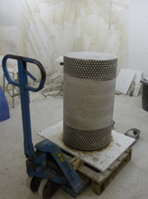 Le moule de potée est réalisé avec un mélange réfractaire, coulé dans un cylindre en tôle perforée.