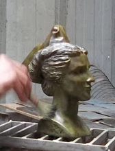 Dernière étape dans la réalisation d'un bronze, la patine consiste à donner une couleur superficielle au métal, à l'aide de produits chimiques divers, et ainsi de mettre en valeur l'oeuvre d'art.