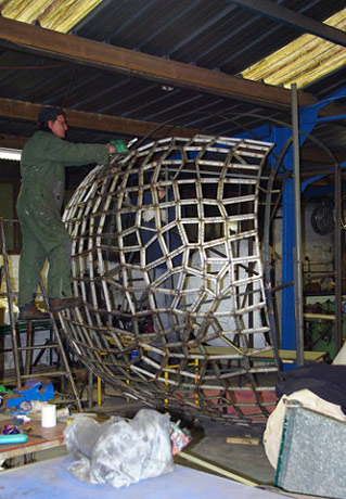 voile pour accueillir la mosaïque de verre, en cours de réalisation.